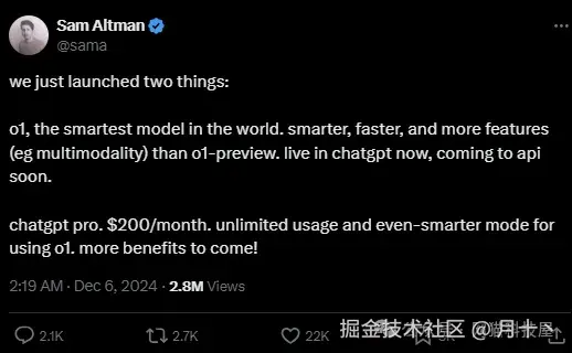 而在12天12场直播活动的首秀中,OpenAI宣布了o1 完全体(Full Version)以及GPT4.5(目前已被设置为不可见,估计得过段时间),以及一项面向高级用户的新订阅服务——ChatGPT Pro,每月费用高达200美元。