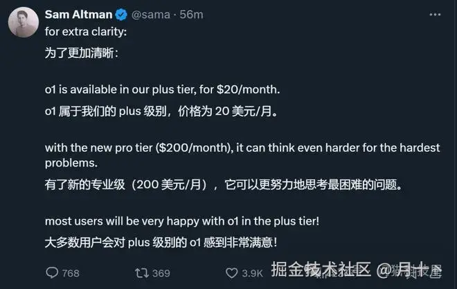 此次发布会的另一项重要内容是推出了ChatGPT Pro,价格高达每月200美元,比现有的ChatGPT Plus订阅(每月20美元)贵了整整十倍,现已正式上线!