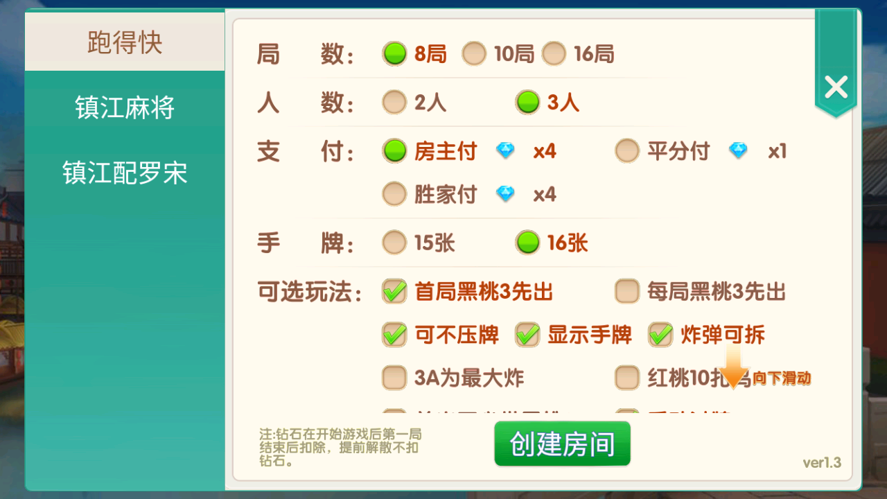 客户定制游戏包含的游戏有:镇江麻将,镇江配罗松,跑得快三款游戏