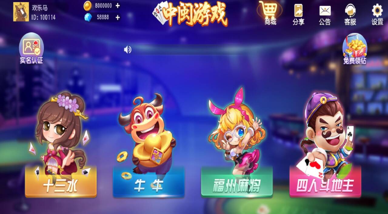 主要为南方的几个游戏,以十三水跟福州麻将为主,福建地区的为主