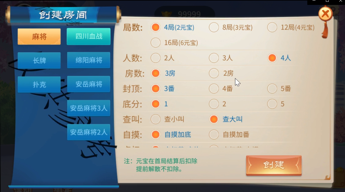 主要游戏包括:斗地主,跑得快,10张跑得快,安岳跑得快,安岳斗十四,四川麻将,安岳麻将,绵阳麻将,绵阳番胡,三台承包,绵阳承包等。